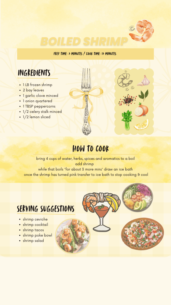 With this simple and flavorful boiled shrimp recipe, you’ll have a delicious seafood dish ready in no time. Perfect for a quick snack, an elegant appetizer, or the centerpiece of your next seafood spread. Enjoy!
